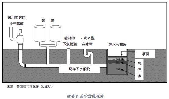 废水收集系统:原标准要求所有的排水管加装封皮、水封、塞子或盖子。排水管产生的废气必须导入工艺设备或污染防治设备。集线箱应安装边缘密封较紧的封皮。下水管道必须保持覆盖和密封,节点或密封处不应存在任何可见的缝隙和裂缝。下水管道也应至少每半年检验一次,并重点寻找缝隙、裂缝等排放点。在执行标准中规定的各项检验时,如果发现了任何问题,必须在5天内进行第一次修复尝试,并在45天内修复完成。