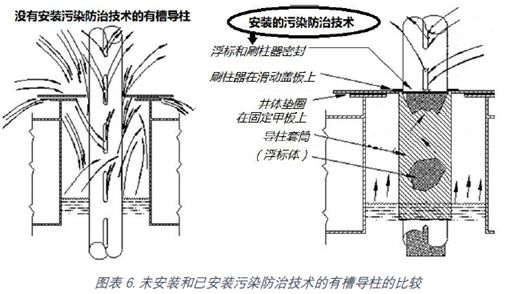 储罐中除自动泄气孔(真空断路孔)和边缘空间孔之外的所有开口的下缘必须位于储存液体表面以下。除自动泄气孔(真空断路孔)、边缘空间孔、支撑架套筒和甲板泄水孔之外的所有开口须配备密封罩,并在不需要开放时始终保持关闭。每个自动泄气孔(真空断路孔)和边缘空间孔须配备密封盖、棘爪、片状阀或其它密封装置。固定罐顶支撑柱的每个开口可配备柔性织物套密封以代替甲板敷料。每个采样井或甲板泄水孔可配备缝隙织物密封或能够覆盖开口90%以上的相似装置,以代替甲板敷料。每个无槽导柱或无槽梯的开口应配备刷柱器,并在导柱的顶端安装密封盖。每个有槽导柱或有槽梯应配备:(1)刷柱器和浮标,且浮标的密封应高于刷柱器或与其持平;或者(2)刷柱器和套筒;或者(3)挠性附件装置和密封盖。这些控制技术也记载在石化厂排放标准中,可最大程度上降低储罐产生的无组织排放。